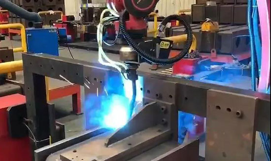 钢结构连接箱法兰焊接,针对下料不准,加装激光焊缝跟踪来修正形位误差