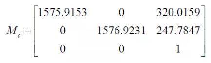 得到摄像机内参数矩阵:
