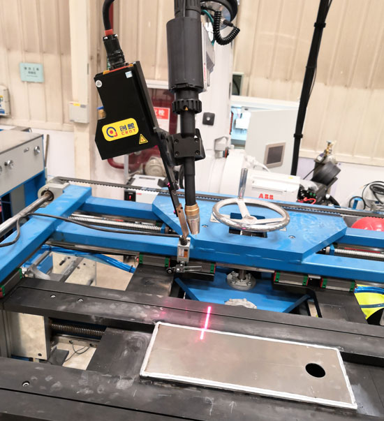 创想机器人焊缝跟踪器原理是, 固定激光视觉传感器在焊枪正前方, 通过直接观察焊枪与焊缝中心线的位置关系, 提取偏差信息, 输出纠偏控制电压。