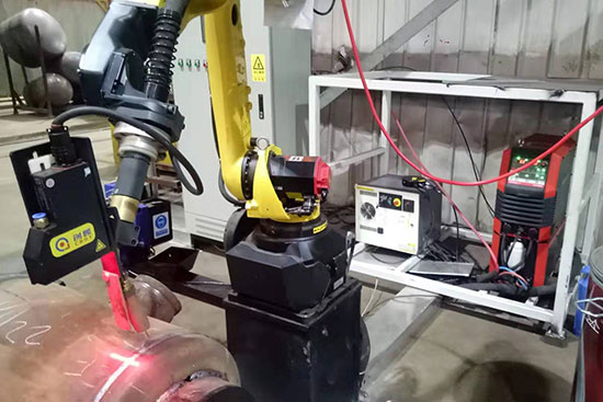 FANUC机器人和固定跟踪软件需要第三方激光跟踪系统来跟踪焊缝,比如北京创想激光跟踪系统。该跟踪激光与软件和机器人通信,因此,机器人仅进行小的垂直和横向补偿调整。主导运动和旋转运动是由组件的前/定位载体而不是FANUC机器人进行的。