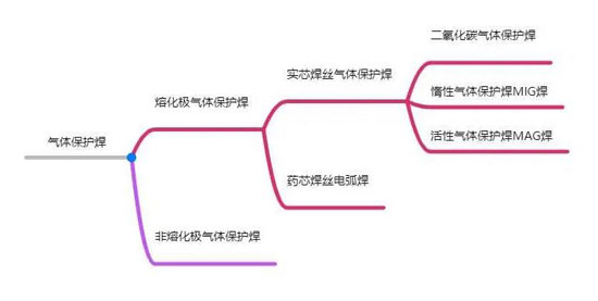 气体保护焊根据所采用的保护气体的种类不同,适于焊接不同的金属。气体保护焊的分类方法很多,通常分类如下图: