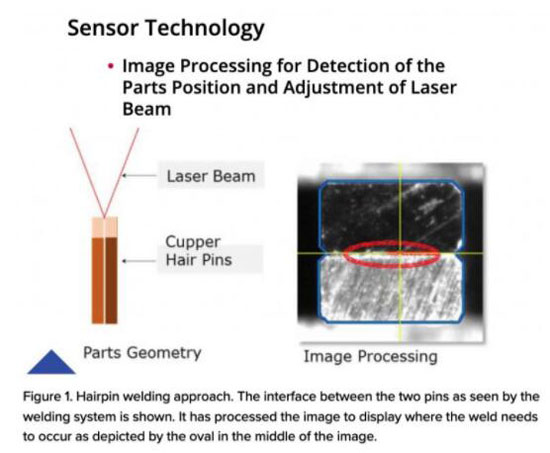 形状识别是一种使用基于相机方法的技术,其中像素化、图像的明暗部分的识别以及高级机器算法的使用不仅用于识别零件形状,还用于指示关节在多轴上的位置。这项技术的开发旨在解决焊接电动机中使用的铜发夹的复杂性。