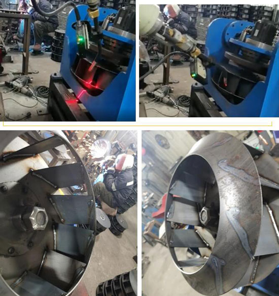 由于风机机壳与叶轮的焊接质量直接决定的风机的质量和美观,传统的自动焊接设备因为无法实时跟踪焊缝,所以无法实现自动焊接,基本是依靠人工焊接。