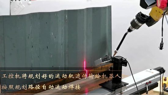 工控机将规划好的运动轨迹传输给机器人,按照规划路径自动运动焊接。